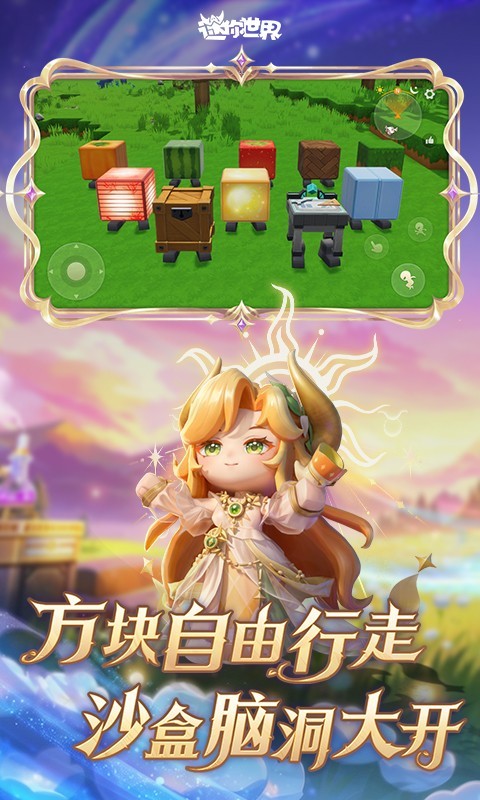 《迷你世界》是一款高度自由的休闲益智型3D沙盒游戏,有着非常方便快捷的多人联机模式,只要有网络就能和各个地方的小伙伴们一起玩,不只局限于局域网内的小伙伴哦!这里没有等级和规则限制,没有规定的玩法,只有随心所欲的破坏和天马行空的创造! 你可以成为牛掰的建筑大师!创建房屋、建筑、城堡、城市…可以过快乐的田园生活!种花草庄稼,养一群可爱的动物…可尽享勇士荣耀!带领小伙伴前往地心挑战世界的黑暗领主…可以做迷你世界的创世神!制造火山、洪水、科技来改变世界…最后还可以把你的世界分享给其他小伙伴,供人膜拜,一起欢乐。