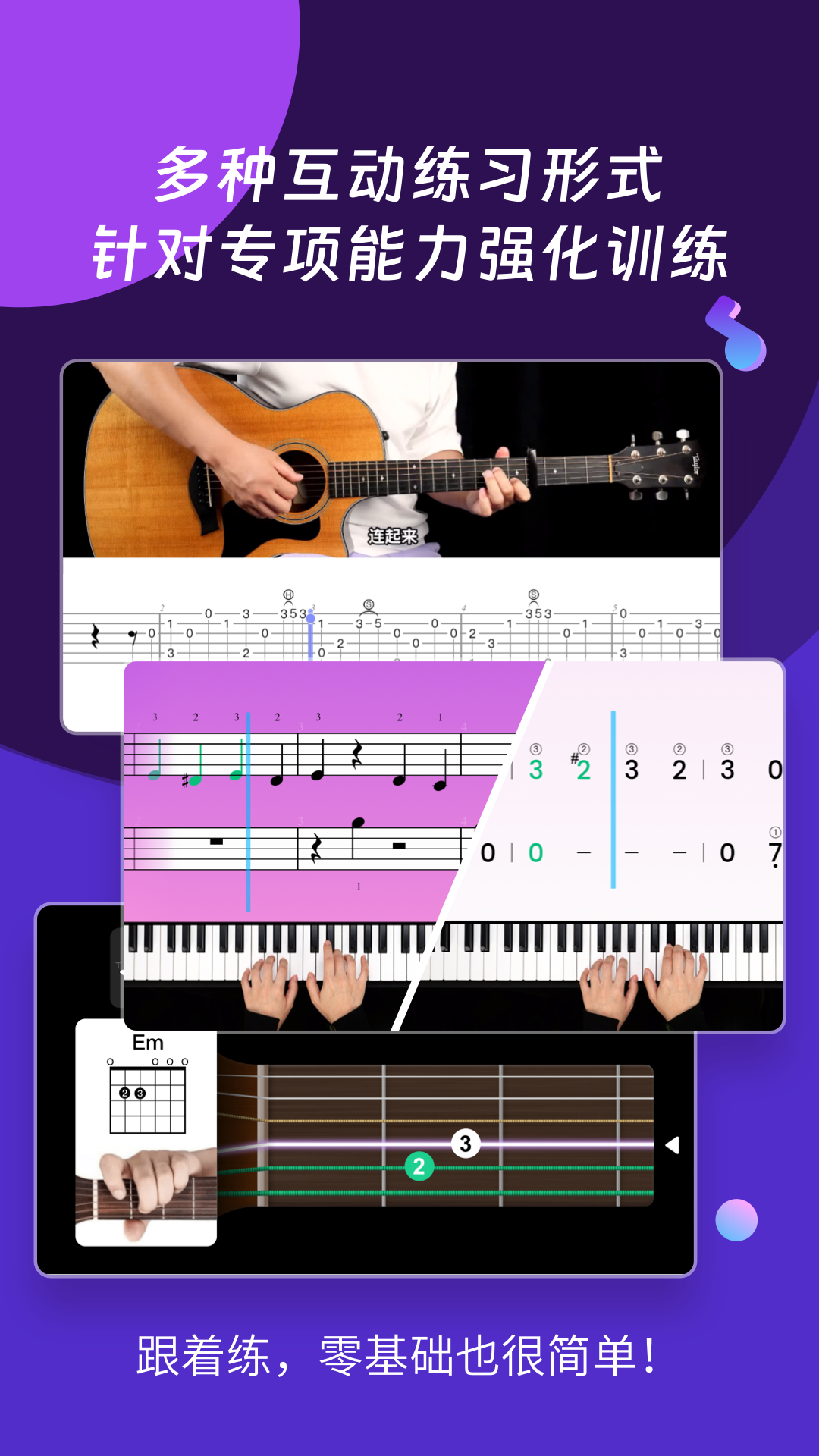 更有多种学习辅助工具:调音器、节拍器、和弦库等多种功能应有尽有。