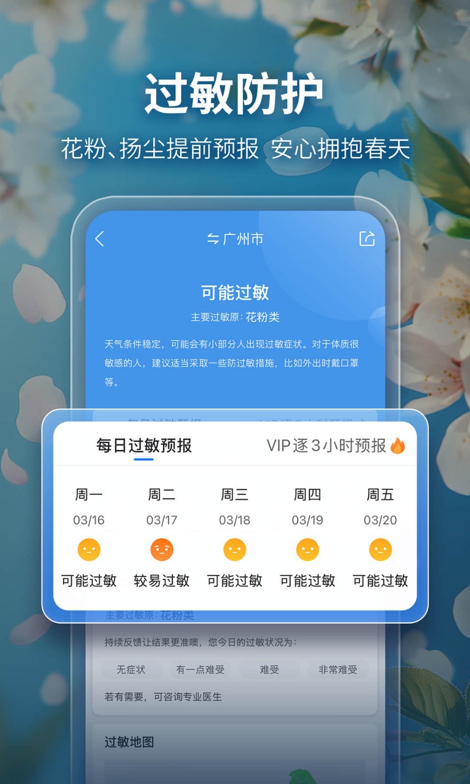 【会员应季服务与健康关怀】推出花期、滑雪、朝霞晚霞等应季特色服务;同时涵盖由天气变化引发的疼痛、过敏、流感等健康提醒。