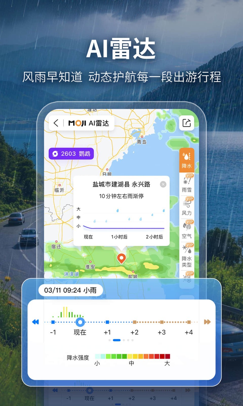 【大雨定点速报】提供“雨前-雨中-雨后”全周期内逐小时的决策保障。在暴雨影响的关键56小时(-8小时至+48小时),给出详细提醒和可行建议,准确指引每一步行动。