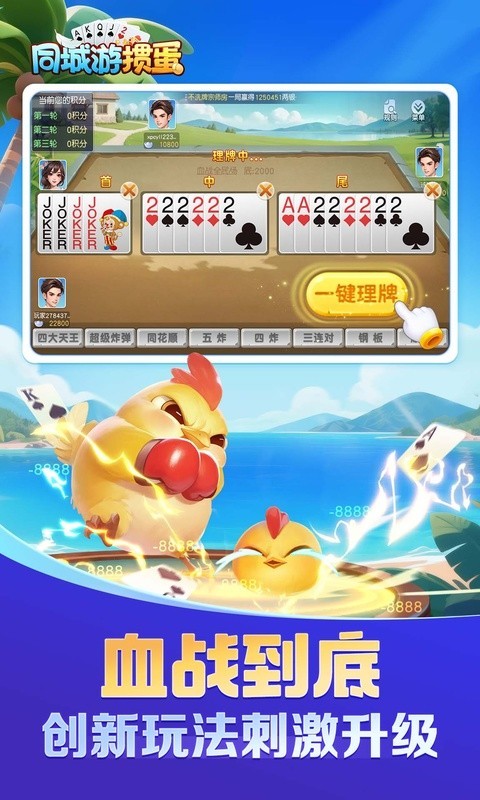 同城游掼蛋进行全新视觉创新,给您带来不一样的视觉体验,并且衍生了不洗牌掼蛋、血战掼蛋等趣味性玩法,能满足您休闲娱乐、提高技术、比赛拿奖等众多需求于一体的游戏。