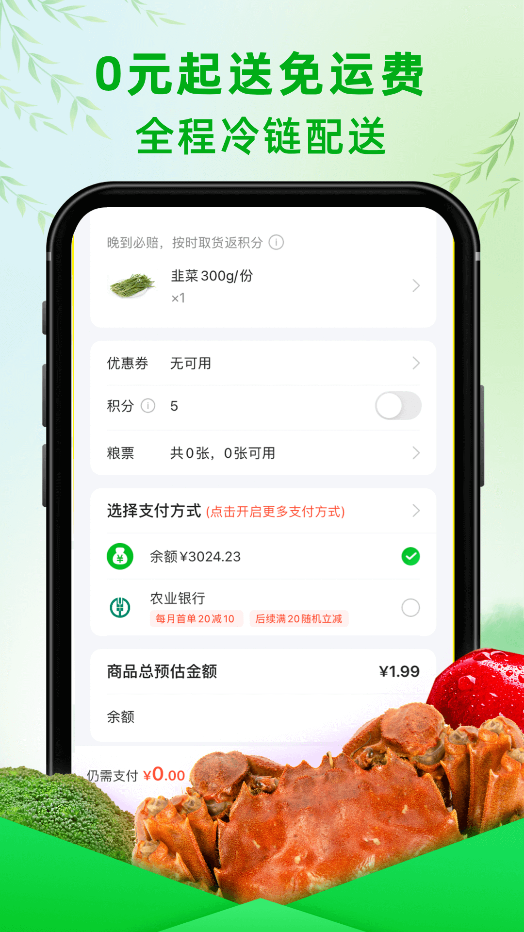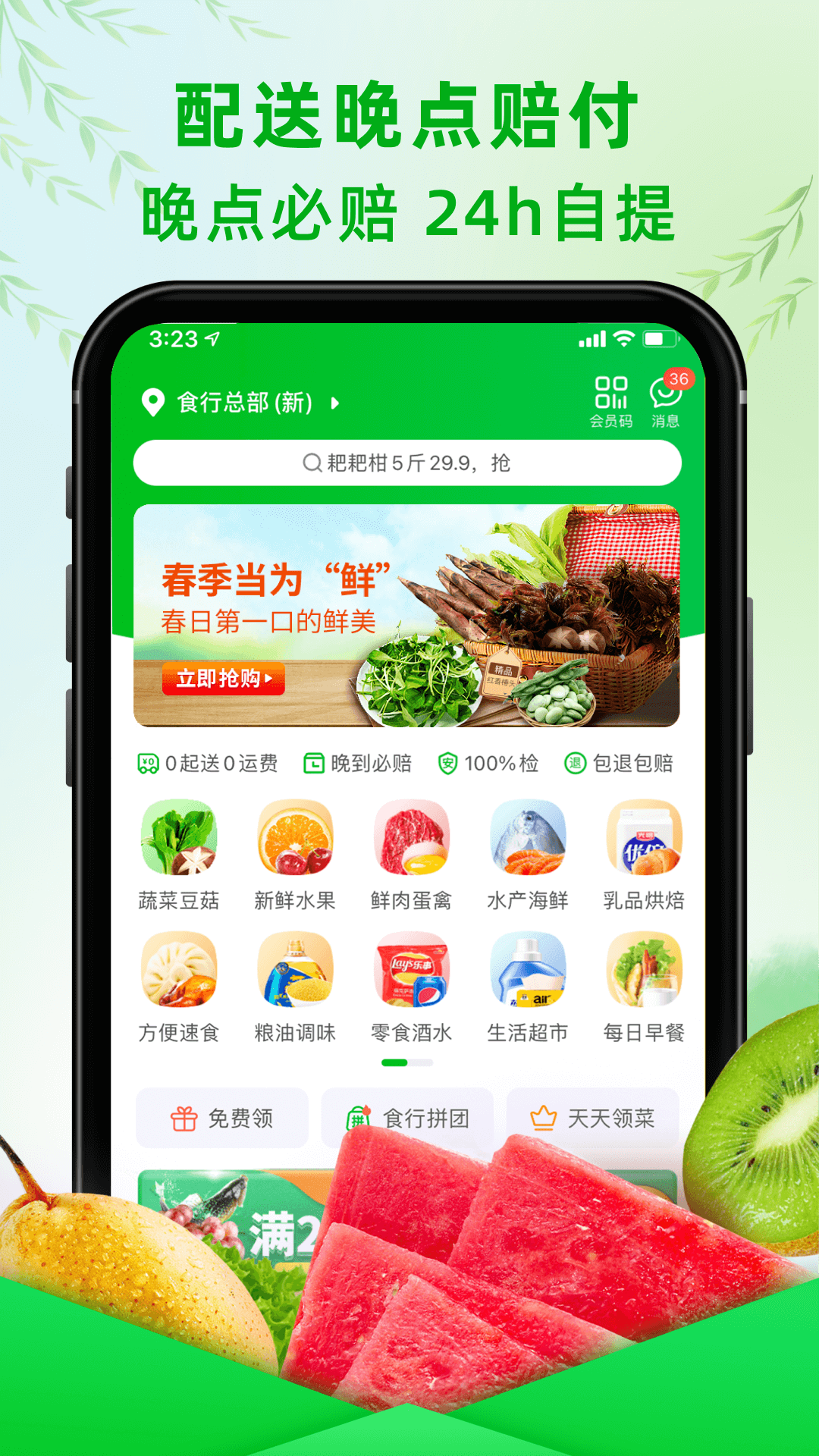 食行生鲜是一款自营生鲜平台,为用户提供平价、质优、安全的生鲜配送服务,是手机上的买菜宝。