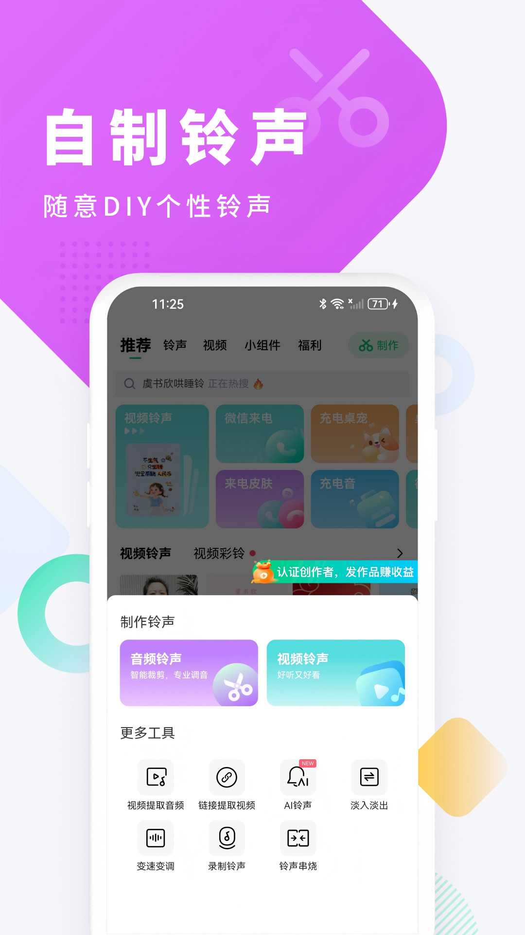 用户可DIY视频铃声和音频铃声,一键裁剪,花样串烧,个性化定制,贴心周到。