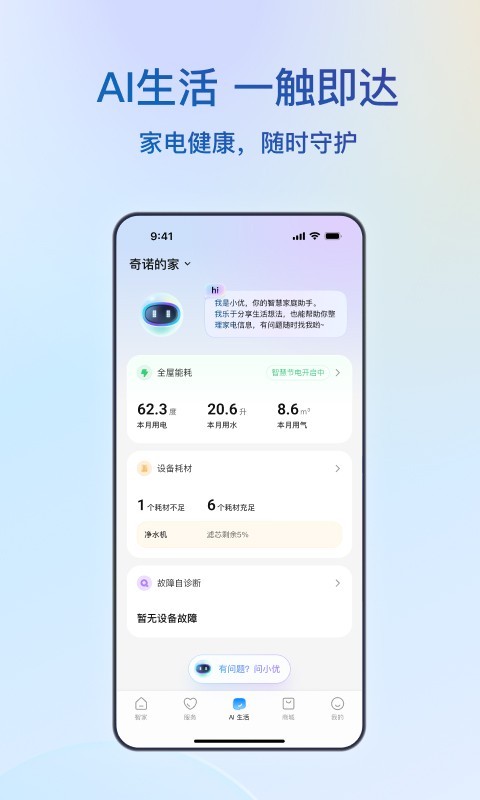 提供家电购买、送装、保养、维修等全流程服务,可轻松查询维保进度和家电购买及保修期等信息,做您家电全生命周期智能管家。