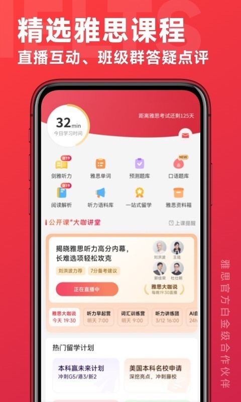 0元公开课-大咖讲堂,雅思听说读写互动答疑。
