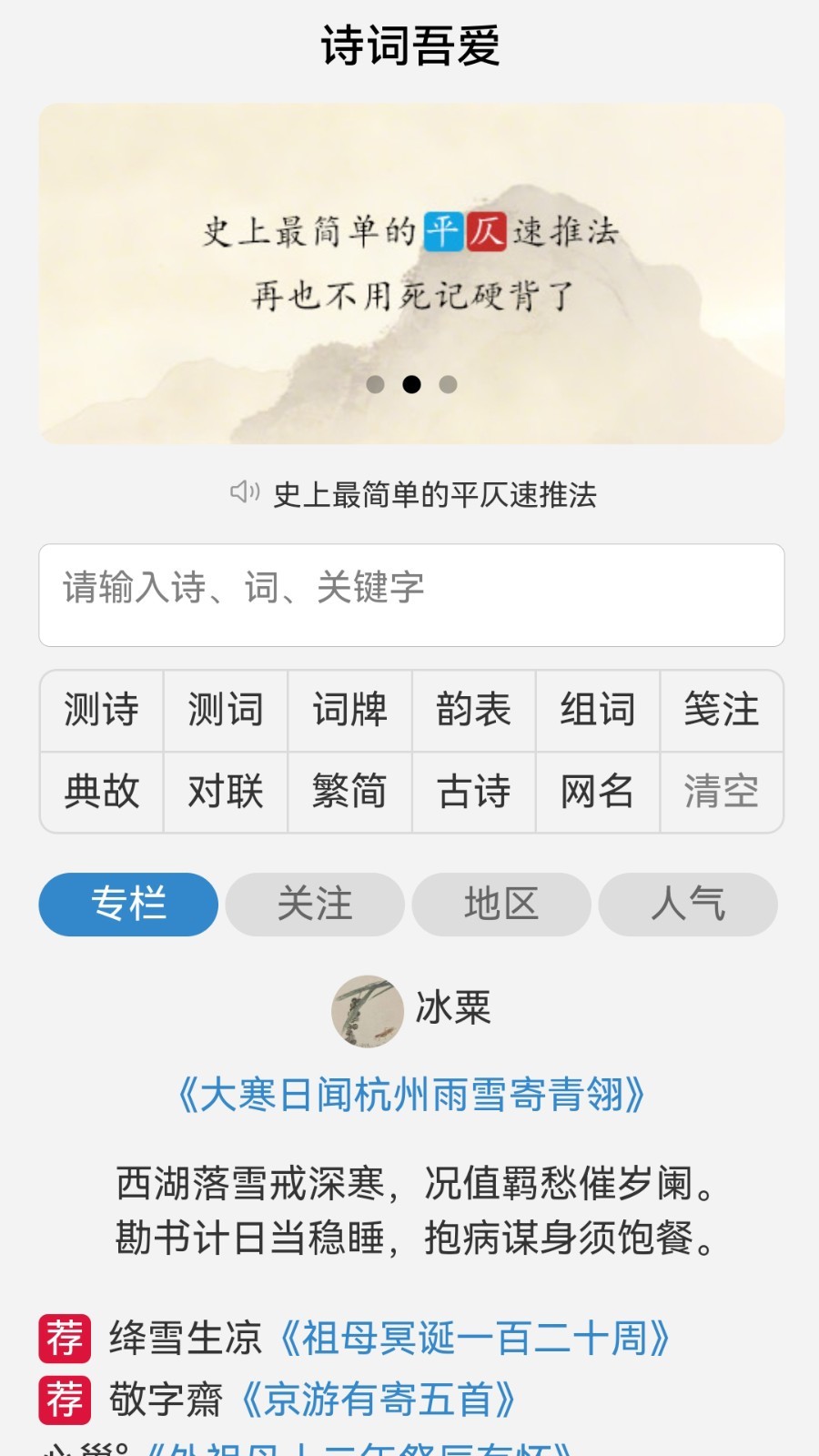 诗词吾爱,诗词爱好者的家园,写诗填词利器!