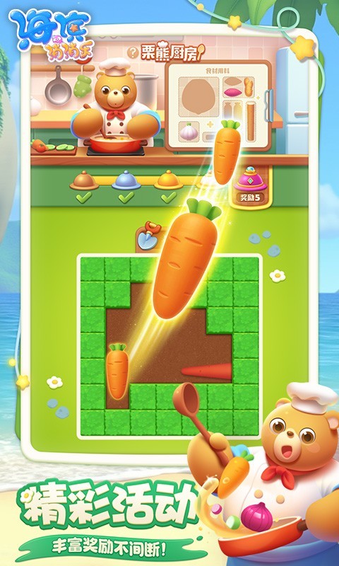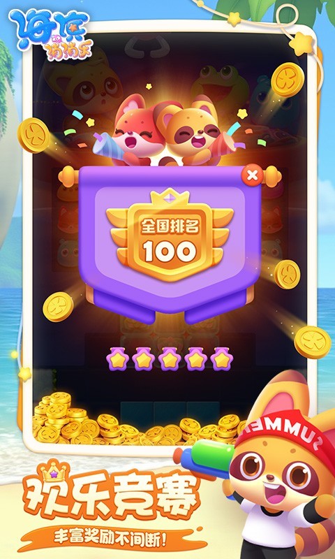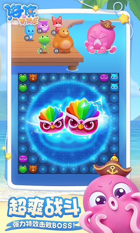 强力推出5种新鲜玩法,每种关卡类型都有小动物们的陪伴哦,精心设计的200+关,给您带来清新丰富的体验,更有全新酷炫效果,消除轻松又爽快。呆萌可爱的小浣熊变身船长,带领小伙伴们畅游海滨,调皮的小鱼、Q弹的软糖、易碎的蜂蜜罐、会跑的玫瑰花、愤怒的小海星、美丽的瓶中蝶……旅途中有更多惊喜等你发现!
