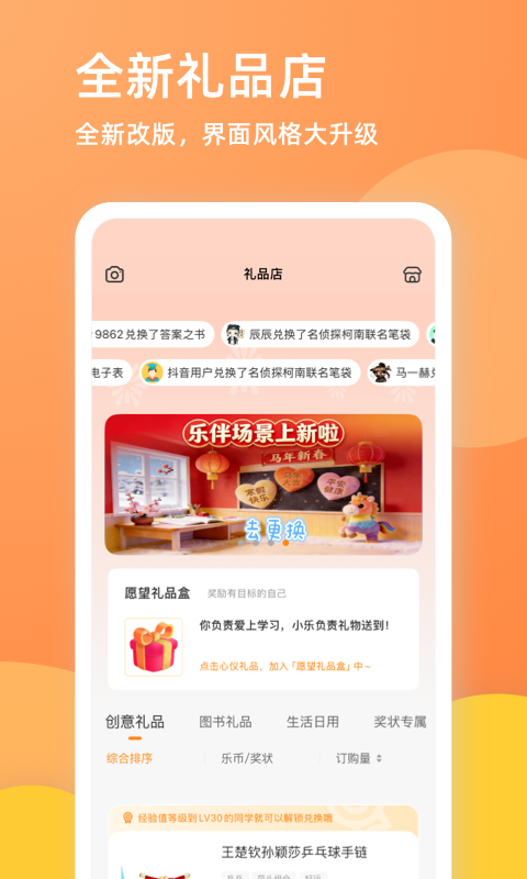 • 累积后可兑换虚拟货币“乐币”,用于换取丰富实物奖品,提升学习积极性